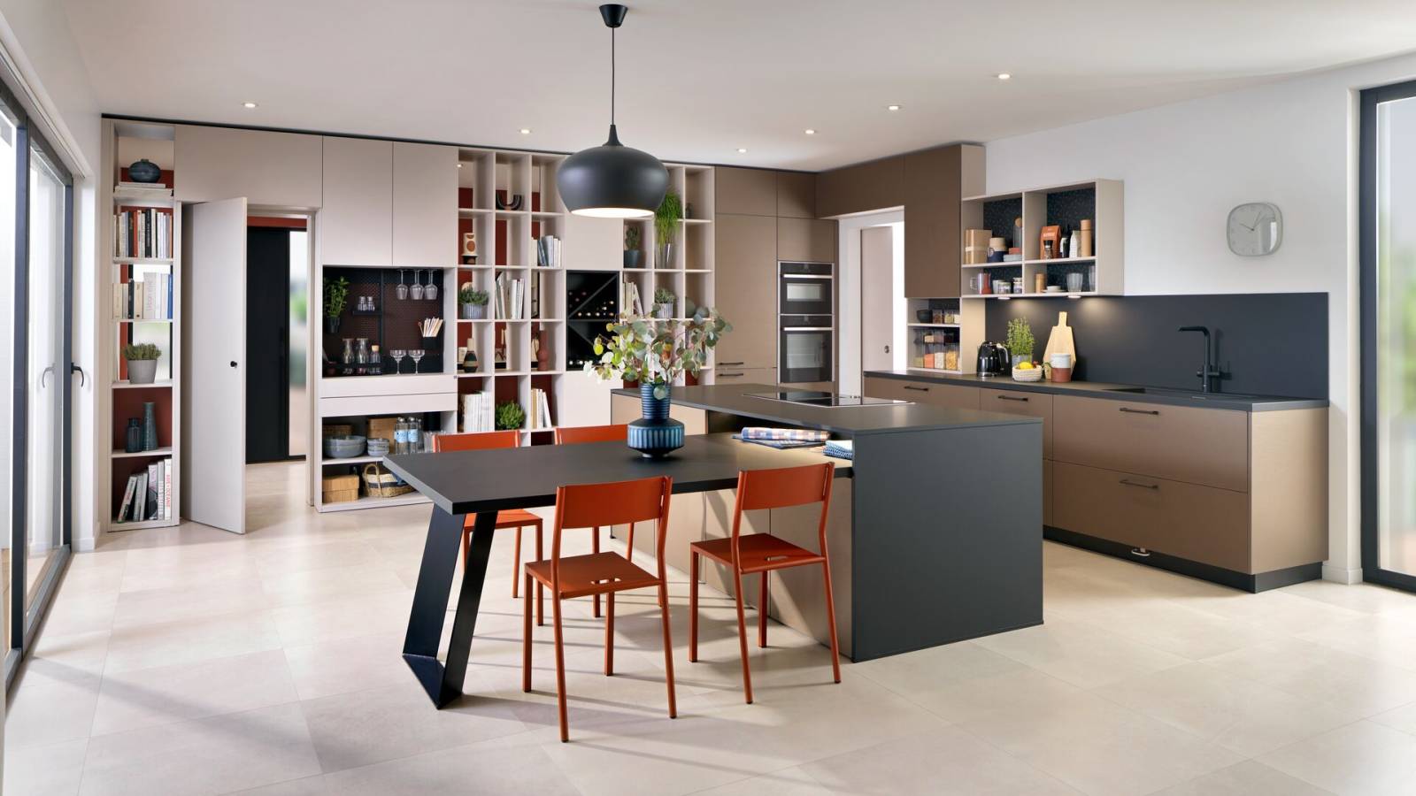 L’îlot est souvent le cœur de la cuisine ouverte. Il peut servir de plan de travail, coin repas ou même bureau selon les besoins. Nos modèles Cuisinella et Schmidt proposent des solutions sur-mesure adaptées à chaque espace.